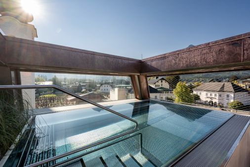 • Wellnessbereich mit Infinity-Pool, Sauna und Dampfbad